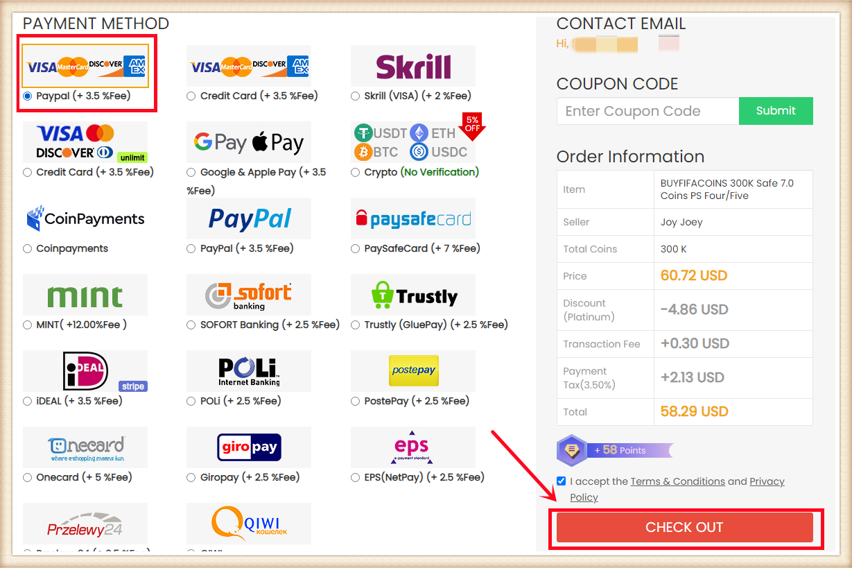 4. Wähle die Zahlungsmethode und gehe zur KASSE.