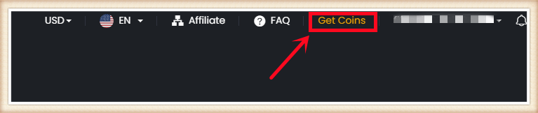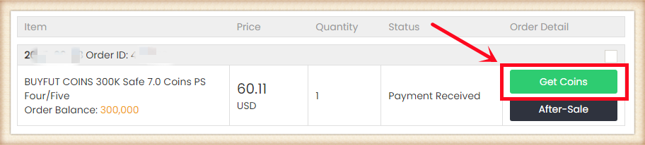 4. Klicke oben rechts auf "Münzen erhalten", finde deine Bestellung und klicke auf "Münzen erhalten".