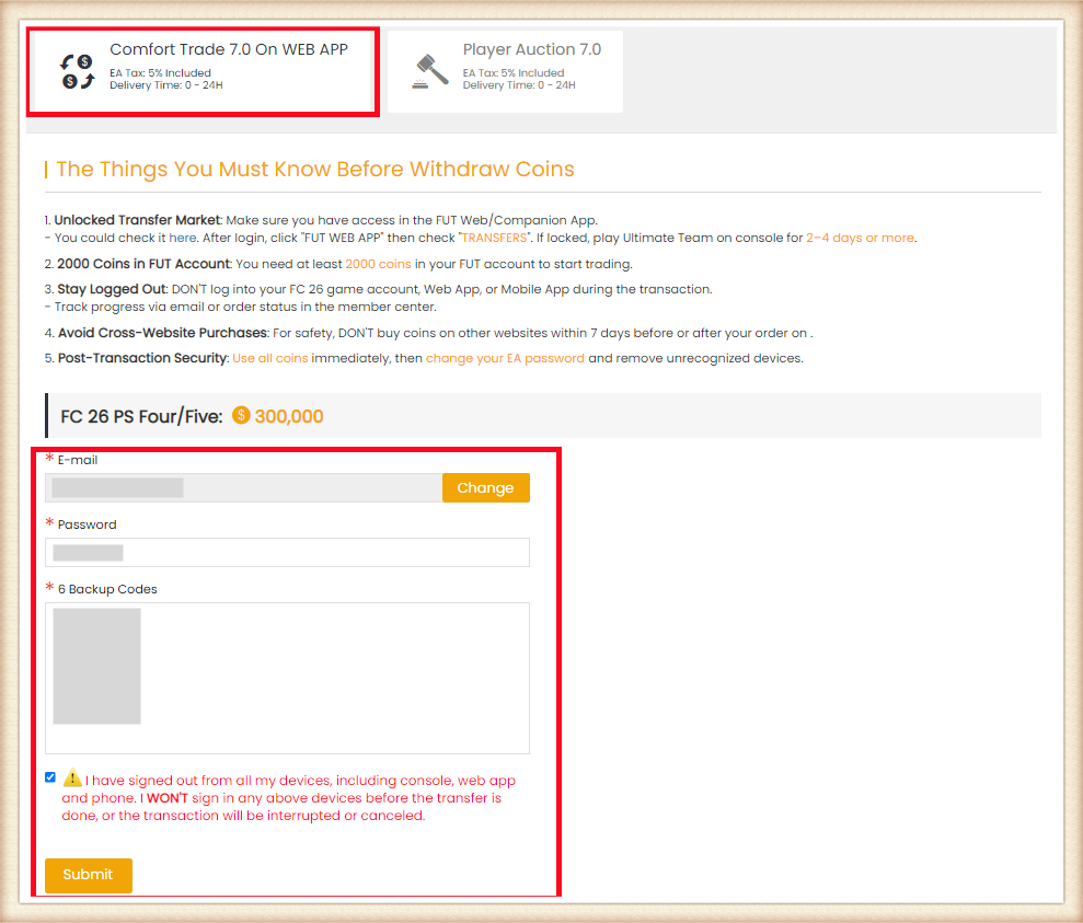 Du kannst diesen Vorgang wiederholen, um mehr Münzen über Player Auction 7.0 abzuheben.